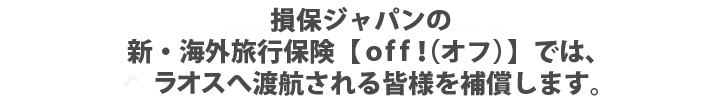 万が一の時はご自身だけでなく、ご家族等も金銭的負担を強いられるケースもありますので、ラオスへ渡航の際は損保ジャパンのoff!にお申込みのうえ、お出かけください。