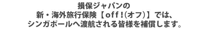 万が一の時はご自身だけでなく、ご家族等も金銭的負担を強いられるケースもありますので、シンガポールへ渡航の際は損保ジャパンのoff!にお申込みのうえ、お出かけください。