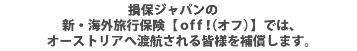 万が一の時はご自身だけでなく、ご家族等も金銭的負担を強いられるケースもありますので、オーストリアへ渡航の際は損保ジャパンのoff!にお申込みのうえ、お出かけください。